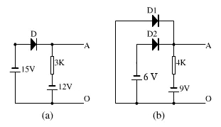 (a)圖中,拿掉二極管D可知,D陽(yáng)極電位為-15v,陰極電位為-12v,D正向電壓為-3v,故D不導(dǎo)通,AO兩端電壓為-12V。