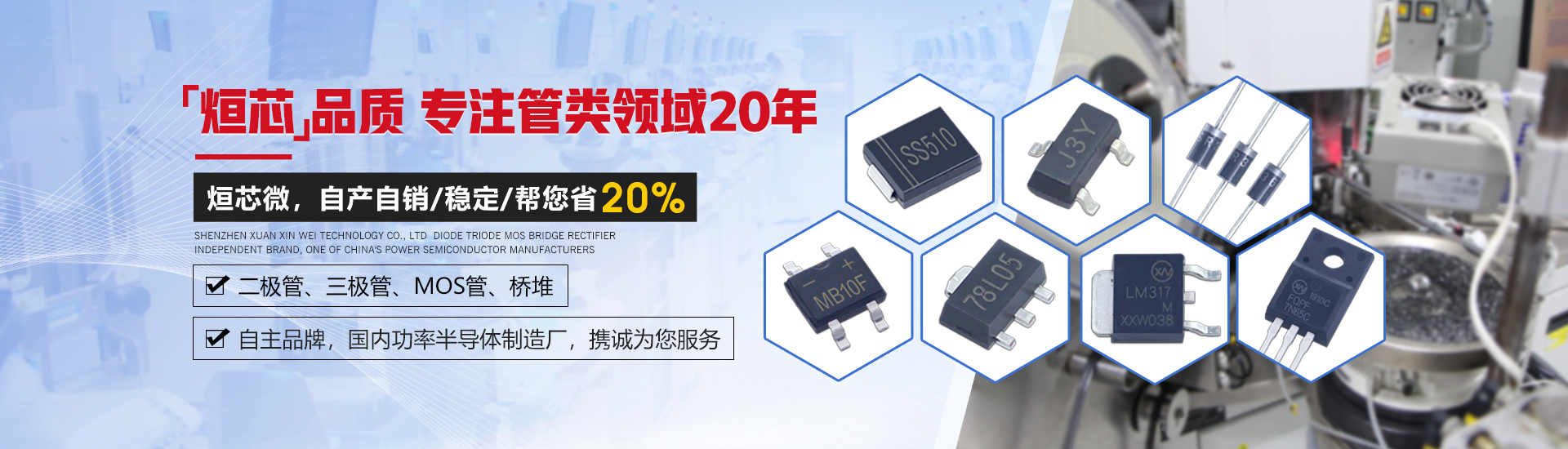 烜芯微專業(yè)制造二極管,三極管,MOS管,橋堆等,20年,工廠直銷省20%,1500家電路電器生產(chǎn)企業(yè)選用,專業(yè)的工程師幫您穩(wěn)定好每一批產(chǎn)品,如果您有遇到什么需要幫助解決的,可以直接聯(lián)系上方的聯(lián)系號(hào)碼或加QQ,由我們的銷售經(jīng)理給您精準(zhǔn)的報(bào)價(jià)以及產(chǎn)品介紹